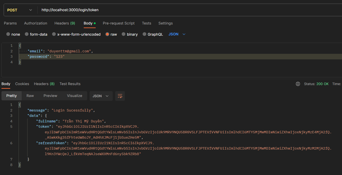 - RefreshToken: Token dự bị khi nào AccessToken hết hạn thì RefreshToken sẽ được thay thế cho Token cũ